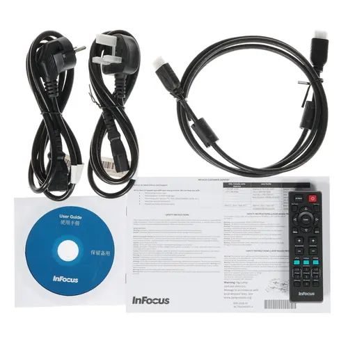 Проектор InFocus IN2139WU выполнен в компактном корпусе с лаконичным дизайном, благодаря которому легко впишется как в домашний, так и офисный интерьер. Для подключения предусмотрено множество различных портов, среди которых есть HDMI и несколько USB. Комплектация включает в себя пульт ДУ, кабель питания и кабель HDMI.