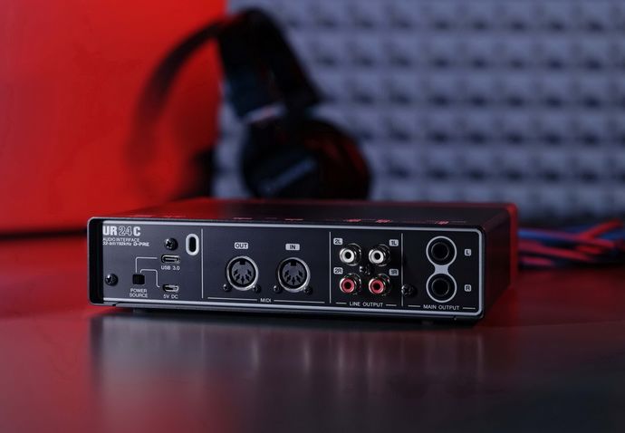 Модель оснащена 2 предусилителями Yamaha D-PRE А класса, небольшим набором встроенных DSP эффектов и имеет функцию Loopback. UR24C укомплектован 5 регуляторами, кнопками Hi-Z / +48V, переключателем Split/Stereo и светодиодными индикаторами. Для подключения предусмотрены: 2 XLR/TRS входа, выход для наушников, 2 TRS выхода, 4 RCA выхода, MIDI вход и выход, разъемы 5V DC и USB-C.
