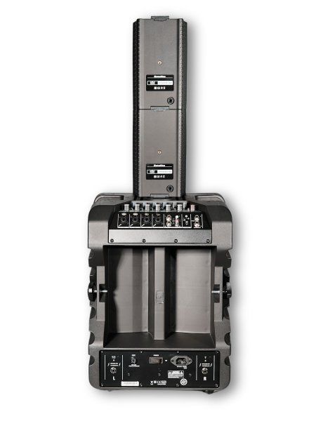 Комплект состоит из двух пассивных акустических систем, активного сабвуфера со встроенным 8-канальным микшерным пультом, а также модулями цифрового усиления класса D, суммарной выходной мощностью 370 Вт (RMS).