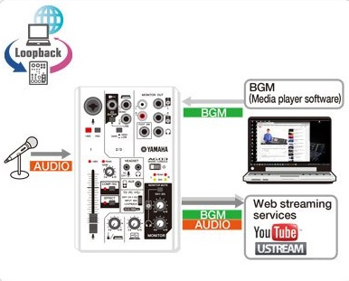Функция LOOPBACK позволяет осуществлять прямую трансляцию со всех микрофонов, инструментов и других внешних источников звука одновременно с фоновой музыкой с используемого компьютера PC / Mac или iPad..